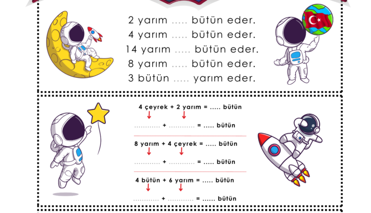2. Sınıf Kesirler Yarım-Çeyrek-Bütün Çalışma Kağıdı